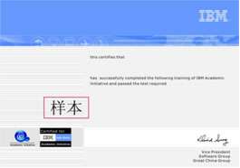 成功完成本课程培训并通过考核鉴定的学员可以同时获得由国家人保部和IBM公司分别颁发的双认证证书。附:证书样本