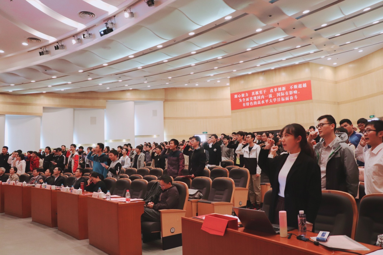 在期末考试、四六级考试、考研即将来临之际,会上全体学生进行诚实做人、诚信考试的承诺宣誓。营造严明纪律,积极向上的考试氛围。