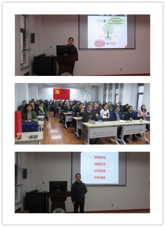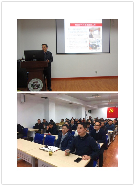 副校长舒慧生,机关党工委专职党务干部肖祥,学院党政领导班子全体成员,学院全体教职工共计100余人,会议由学院党委书记王新厚主持。