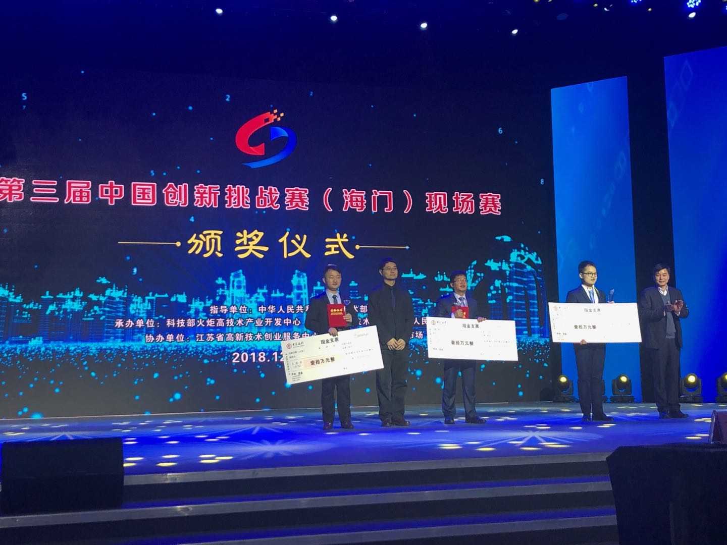 经过现场挑战赛激烈角逐,孙宝忠团队,在第三届中国创新挑战赛(海门)中,以整个挑战赛中最高成绩获得优胜奖(本次大赛共设优胜奖三名,优秀奖六名)。
