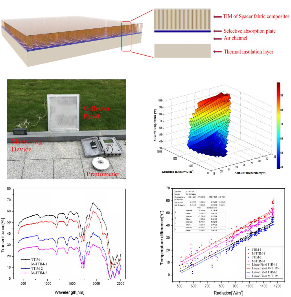 Hao Jia, Jingjing Zhu, Zhaoling Li, Xiaomei Cheng, Jiansheng Guo*, Solar thermal energy harvesting properties of spacer fabric composite used for transparent insulation materials. Solar energy materials and solar cells. 2018, 174, 140–145. (1区, IF=5.018)