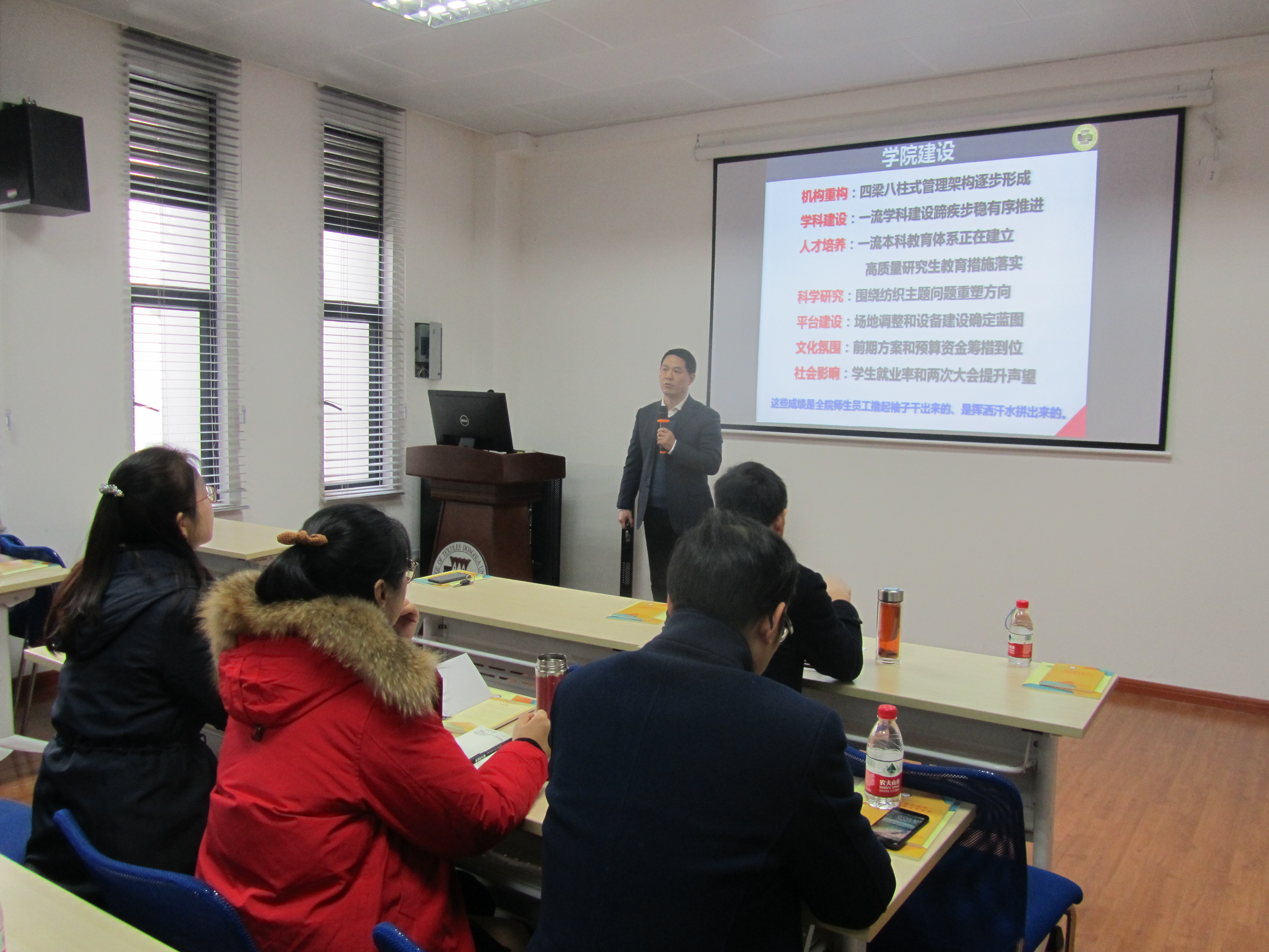 本次会议的内容是由顾伯洪院长总结本学期学院的主要工作,他从学院的党建工作、“四梁八柱”管理架构、师资队伍规模、教师取得荣誉、学科建设完成情况、学科经费现状、本科生教学工作、研究生教学工作、科研产出、平台建设、文化建设、社会影响、国际合作、下学期展望等方面进行阐述。顾伯洪院长充分肯定了学院这一年以来学院全体师生取得的良好成绩,并对下一年学院发展提出了具体的规划和展望。