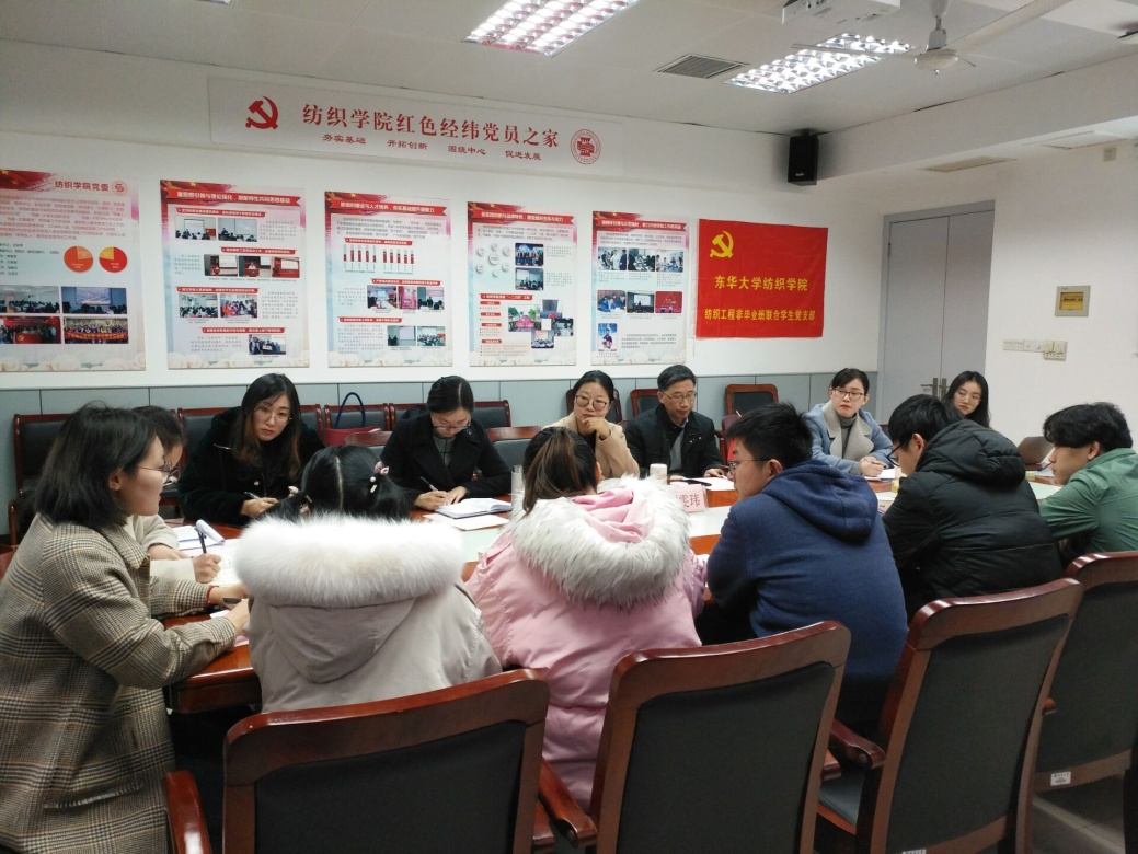 党委副书记刘雯玮、纺织工程非毕业班联合学生党支部全体成员参加此次会议。