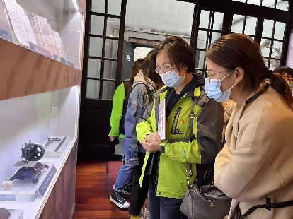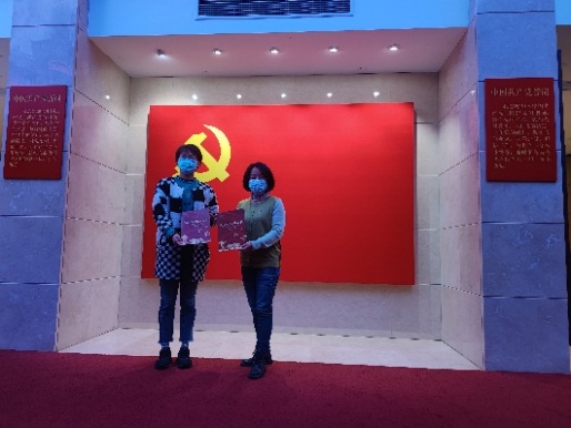 党员们参观了各类展厅,通过讲解,了解了一件件珍贵文件和书籍背后的故事,它们凝结了革命先烈们的心血和艰苦的奋斗历程。人物展厅内的墙壁上挂着参加中共二大会议的12名代表头像及介绍,其中一名代表至今身份无法确认,那空白的一块象征着为中国共产党、为中华民族呕心沥血、鞠躬尽瘁的千千万万名中共党员们;在党章陈列室里,陈列着中国共产党每次修订的党章,看着那革命先烈所书写的党章,认真工整的字迹里我们依然能深切体会到一位革命者对于党的坚定信念和无限忠诚,以及对待事物一丝不苟、毫不懈怠的精神。