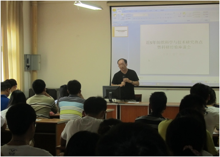 In the afternoon of September 9th, Professor Ning Pan who came from the University of CaliforniaDavis gave a speech named “Nearly five years of textile science and technology research field and the research experience forum in room 3004, the majority of textile college’s doctoral students, master students and teachers participated.